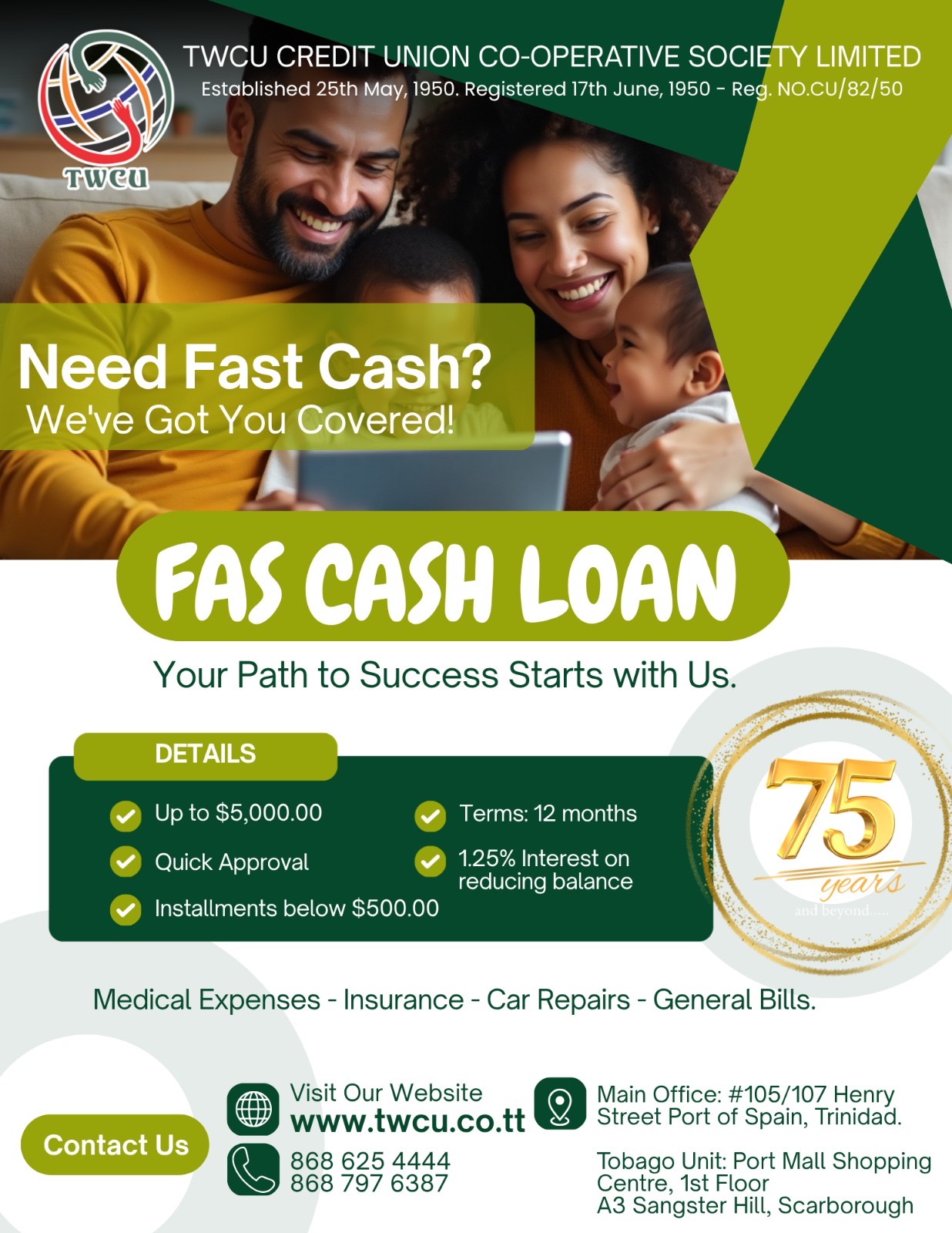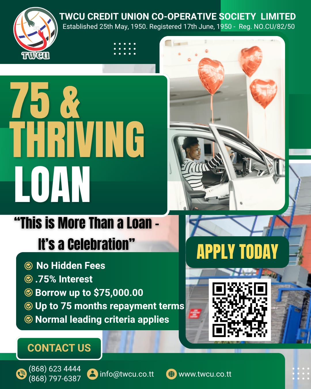 At TWCU Credit Union Co-operative Society Limited, we take great pride in our personal approach in dealing with our members, coupled with our wide array of products and services, we provide a solid base from which we can serve our members even more efficiently & effectively.